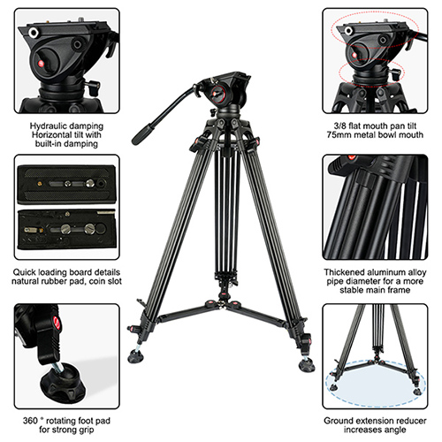 Aluminium tripod, pigura sing awet, sikil entheng, luwes, cocog kanggo mburu, njupuk, lan operasi bebas tangan ruangan
