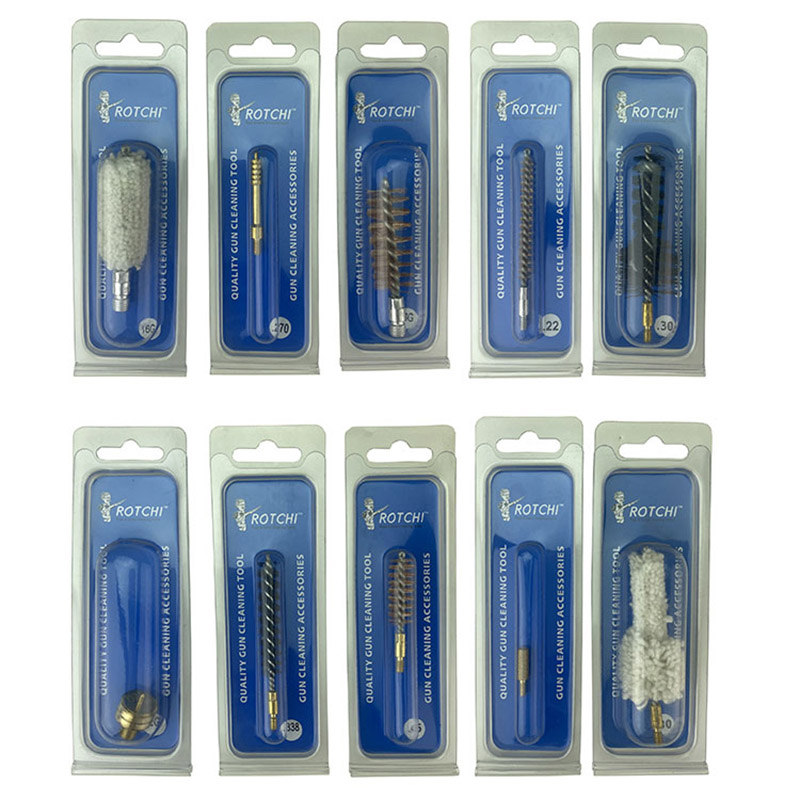 Kuningan kandelang sikat ngresiki bedhil kanggo ngresiki bore. Rotchi nyedhiyakake kabeh calibers saka .177 / 44mm kanggo 12GAGE. Lan duwe bungkusan sing beda kanggo pilihan sing cerdas, kayata Clister Clemshell / Ganda, 3 pcs siji pak, 10 pcs saben pak.
