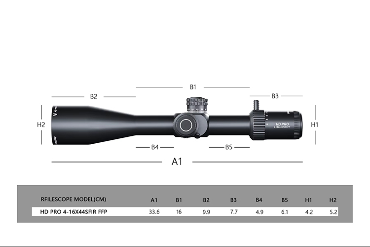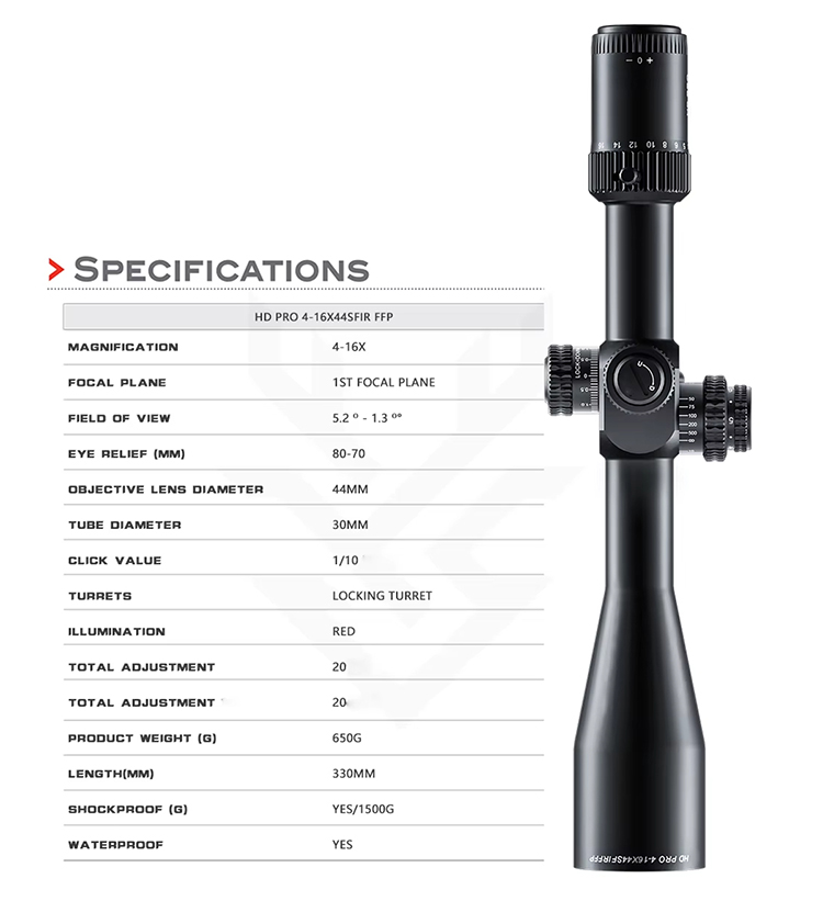 Optik HD Pro 4-16x44 SFIR FFP Tingkat High Tingkat High Taktik 30mm Tube
