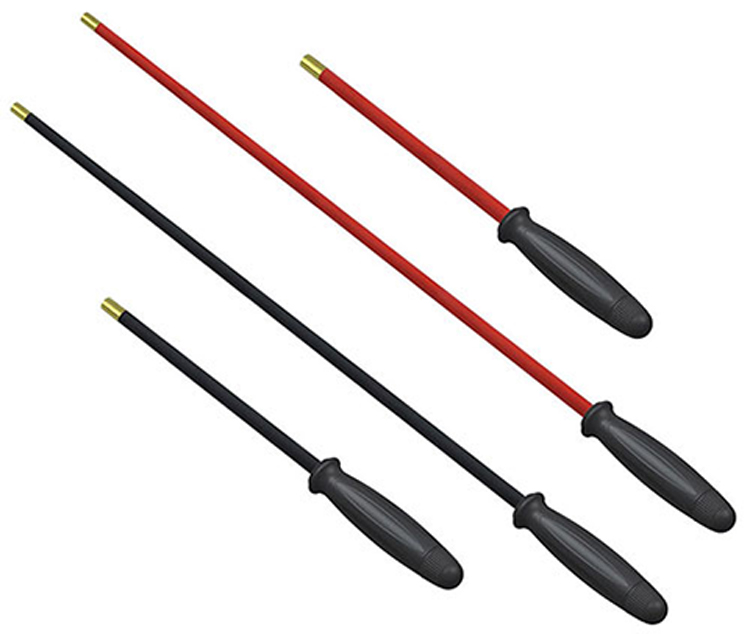 Siji Piece rod reresik gun dawa karo cepet puteran prewangan plastik nangani duwe multi rod materi kanggo pilihan. Dawane standar kanggo bedhil lan shotgun yaiku 38 "lan 9" kanggo pistol. Kemasan tabung transparan sing dawa.