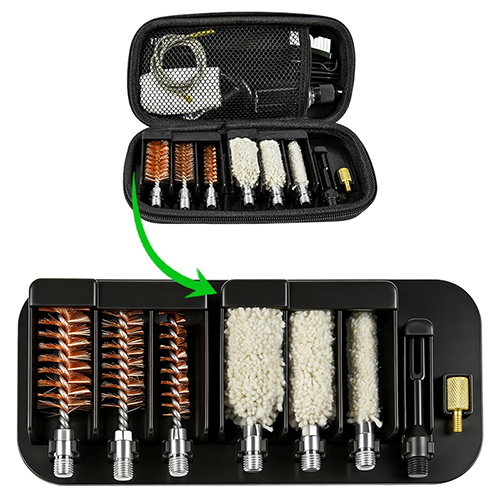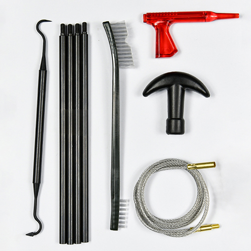 Kit cleaning shotgun kalebu 3 ukuran (12/16G, 20G, 410). sikat kuningan lan katun mops, 4 rod 1 calbe. Werna wedhi lan ireng kanggo pilihan.