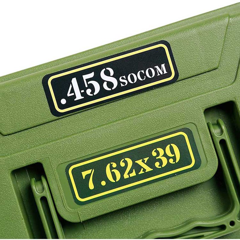 Ammo Aolamegs bisa vinil stiker nyetel label decal kanggo cans case kothak .22 .223 .308 17mm .380 .4mm .4mm .4mm .4mm .4m4 .45 5.62 7.62 1200 12GA 300